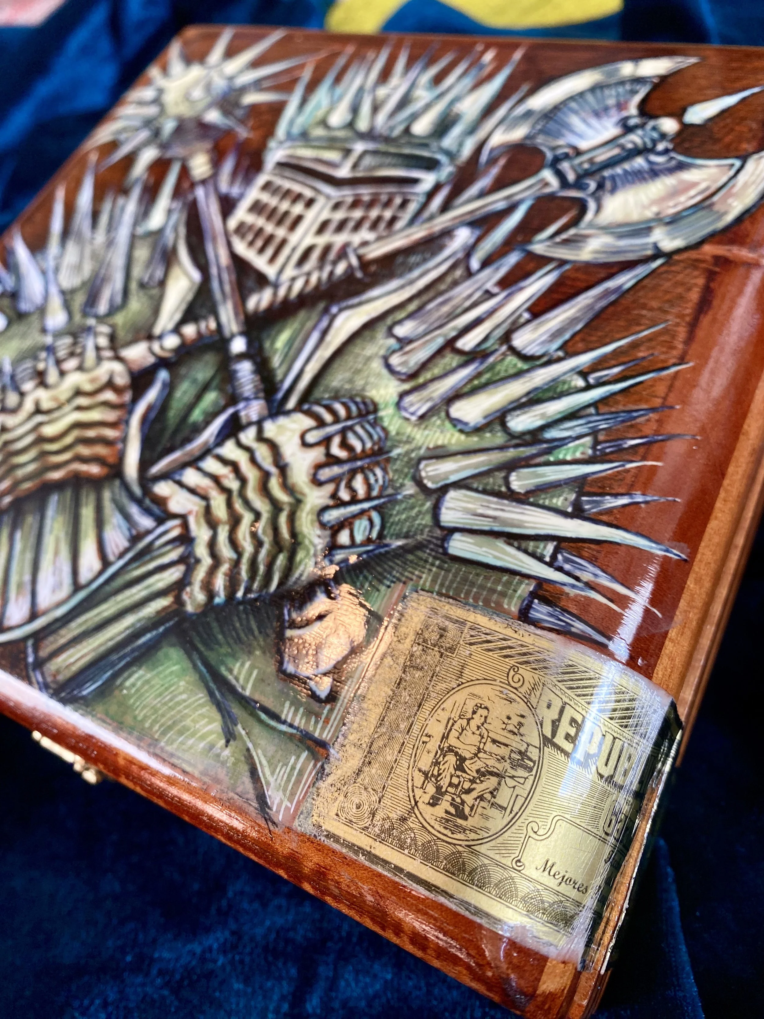 Shop Categories: All Portrait Collage Prints Preorders Ready to Ship All Portrait Collage Prints Preorders Ready to Ship “Pain Guardian” Stash Box $100.00 “Pandora” Stash Box $175.00 "The Circus" Original Painting $400.00 “Fountain Of Renascence” Original Painting $250.00 Sold Out